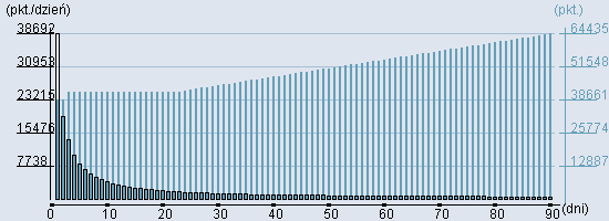 Rozkład realnego czasu hospitalizacji dla tej grupy JGP ![]() Wykres przedstawiąjacy rentowność pobytu pacjenta w zależności od ilości dni. ![]() | ||||||||||||||||||