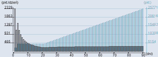 Rozkład realnego czasu hospitalizacji dla tej grupy JGP ![]() Wykres przedstawiąjacy rentowność pobytu pacjenta w zależności od ilości dni. ![]() | ||||||||||||||||||||||||||