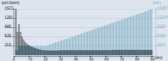 Rozkład realnego czasu hospitalizacji dla tej grupy JGP ![]() Wykres przedstawiąjacy rentowność pobytu pacjenta w zależności od ilości dni. ![]() | ||||||||||||||||||||||||