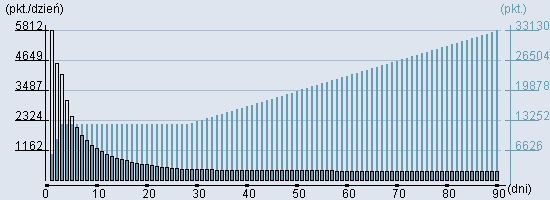Rozkład realnego czasu hospitalizacji dla tej grupy JGP ![]() Wykres przedstawiąjacy rentowność pobytu pacjenta w zależności od ilości dni. ![]() | |||||||||||||||||||||||||||||||||