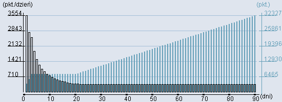 Rozkład realnego czasu hospitalizacji dla tej grupy JGP ![]() Wykres przedstawiąjacy rentowność pobytu pacjenta w zależności od ilości dni. ![]() | |||||||||||||||||