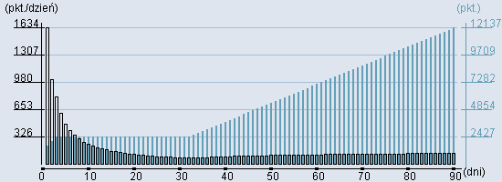 Rozkład realnego czasu hospitalizacji dla tej grupy JGP ![]() Wykres przedstawiąjacy rentowność pobytu pacjenta w zależności od ilości dni. ![]() | |||||||||||||||||||