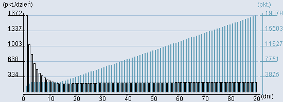 Rozkład realnego czasu hospitalizacji dla tej grupy JGP ![]() Wykres przedstawiąjacy rentowność pobytu pacjenta w zależności od ilości dni. ![]() | ||||||||||||||||||