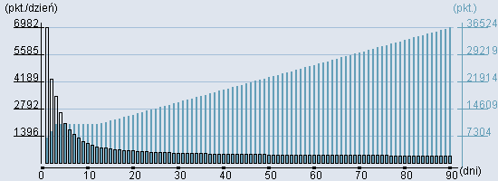 Rozkład realnego czasu hospitalizacji dla tej grupy JGP ![]() Wykres przedstawiąjacy rentowność pobytu pacjenta w zależności od ilości dni. ![]() | ||||||||||||||||||