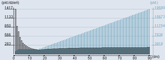 Rozkład realnego czasu hospitalizacji dla tej grupy JGP ![]() Wykres przedstawiąjacy rentowność pobytu pacjenta w zależności od ilości dni. ![]() | ||||||||||||||||||||||||||