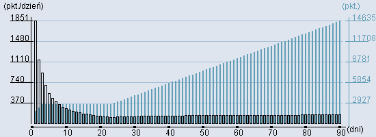 Rozkład realnego czasu hospitalizacji dla tej grupy JGP ![]() Wykres przedstawiąjacy rentowność pobytu pacjenta w zależności od ilości dni. ![]() | ||||||||||||||||||