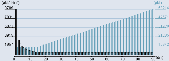 Rozkład realnego czasu hospitalizacji dla tej grupy JGP ![]() Wykres przedstawiąjacy rentowność pobytu pacjenta w zależności od ilości dni. ![]() | |||||||||||||||||||||||||||||||