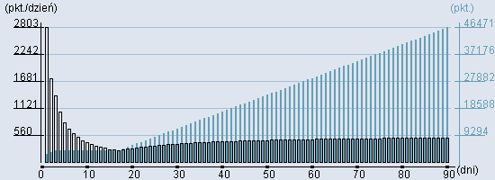 Rozkład realnego czasu hospitalizacji dla tej grupy JGP ![]() Wykres przedstawiąjacy rentowność pobytu pacjenta w zależności od ilości dni. ![]() | ||||||||||||||||||||||||||