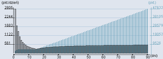 Rozkład realnego czasu hospitalizacji dla tej grupy JGP ![]() Wykres przedstawiąjacy rentowność pobytu pacjenta w zależności od ilości dni. ![]() | ||||||||||||||||||