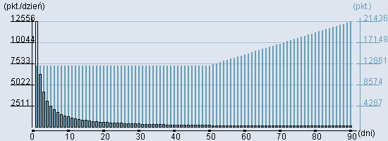 Rozkład realnego czasu hospitalizacji dla tej grupy JGP ![]() Wykres przedstawiąjacy rentowność pobytu pacjenta w zależności od ilości dni. ![]() | ||||||||||||||||||||||||