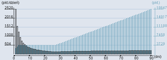 Rozkład realnego czasu hospitalizacji dla tej grupy JGP ![]() Wykres przedstawiąjacy rentowność pobytu pacjenta w zależności od ilości dni. ![]() | ||||||||||||||||||