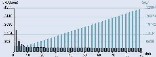 Rozkład realnego czasu hospitalizacji dla tej grupy JGP ![]() Wykres przedstawiąjacy rentowność pobytu pacjenta w zależności od ilości dni. ![]() | |||||||||||||||||||||||||||||||||