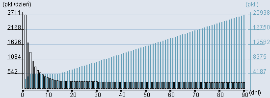 Rozkład realnego czasu hospitalizacji dla tej grupy JGP ![]() Wykres przedstawiąjacy rentowność pobytu pacjenta w zależności od ilości dni. ![]() | ||||||||||||||||||||||||||||