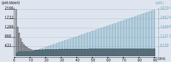 Rozkład realnego czasu hospitalizacji dla tej grupy JGP ![]() Wykres przedstawiąjacy rentowność pobytu pacjenta w zależności od ilości dni. ![]() | ||||||||||||||||||||||||||