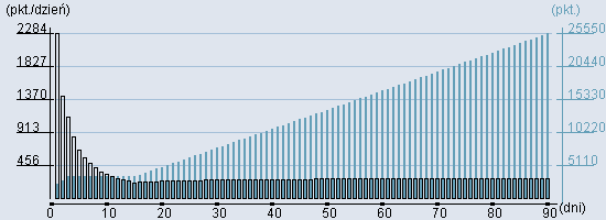 Rozkład realnego czasu hospitalizacji dla tej grupy JGP ![]() Wykres przedstawiąjacy rentowność pobytu pacjenta w zależności od ilości dni. ![]() | |||||||||||||||||||||