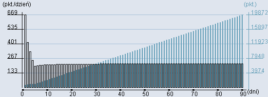 Rozkład realnego czasu hospitalizacji dla tej grupy JGP ![]() Wykres przedstawiąjacy rentowność pobytu pacjenta w zależności od ilości dni. ![]() | ||||||||||||||||||