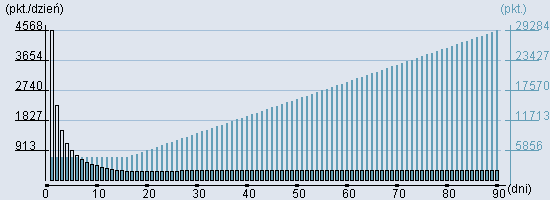 Rozkład realnego czasu hospitalizacji dla tej grupy JGP ![]() Wykres przedstawiąjacy rentowność pobytu pacjenta w zależności od ilości dni. ![]() | ||||||||||||||||||||