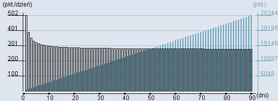 Rozkład realnego czasu hospitalizacji dla tej grupy JGP ![]() Wykres przedstawiąjacy rentowność pobytu pacjenta w zależności od ilości dni. ![]() | |||||||||||||||||||