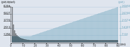 Rozkład realnego czasu hospitalizacji dla tej grupy JGP ![]() Wykres przedstawiąjacy rentowność pobytu pacjenta w zależności od ilości dni. ![]() | ||||||||||||||||||||||||||||||||||
