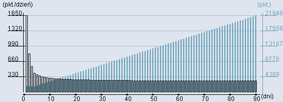 Rozkład realnego czasu hospitalizacji dla tej grupy JGP ![]() Wykres przedstawiąjacy rentowność pobytu pacjenta w zależności od ilości dni. ![]() | ||||||||||||||||||